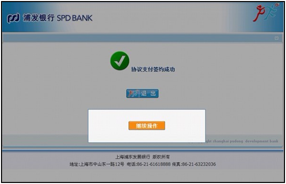 2.2 進(jìn)入浦發(fā)銀行直聯(lián)協(xié)議支付簽約成功頁(yè)面,點(diǎn)擊頁(yè)面中的彈層按鈕“繼續(xù)操作”,頁(yè)面跳轉(zhuǎn)至匯添富網(wǎng)上交易開(kāi)戶(hù)成功頁(yè)面。