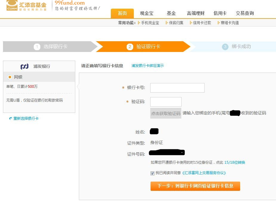 2.3 點(diǎn)擊“已完成驗(yàn)證”,回到匯添富網(wǎng)站頁(yè)面,提示綁卡成功。