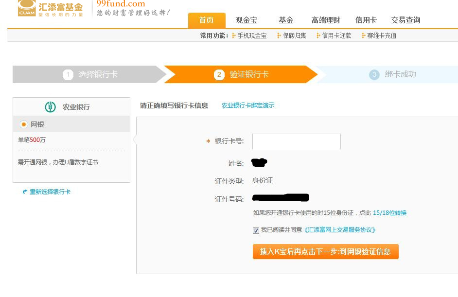 第三步 填入您的銀行卡信息,完成銀行卡驗(yàn)證