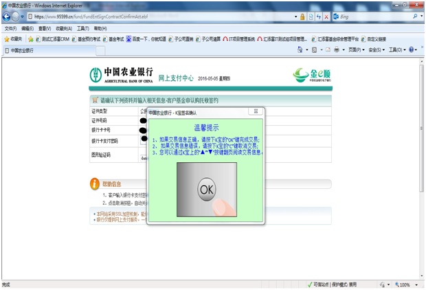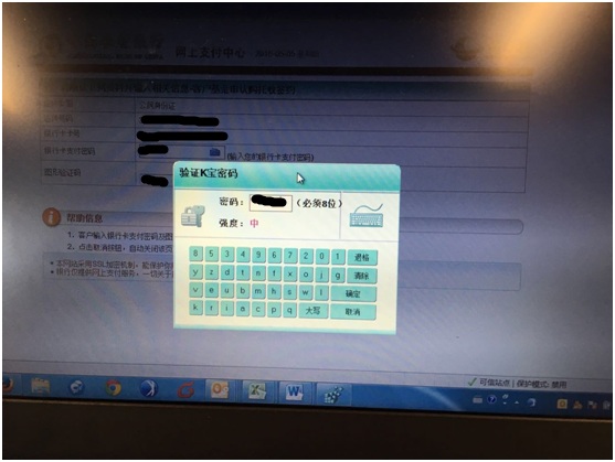 3.1 插入農(nóng)行K寶,頁面跳轉(zhuǎn)至農(nóng)行網(wǎng)站K寶密碼輸入頁面,輸入K寶密碼;