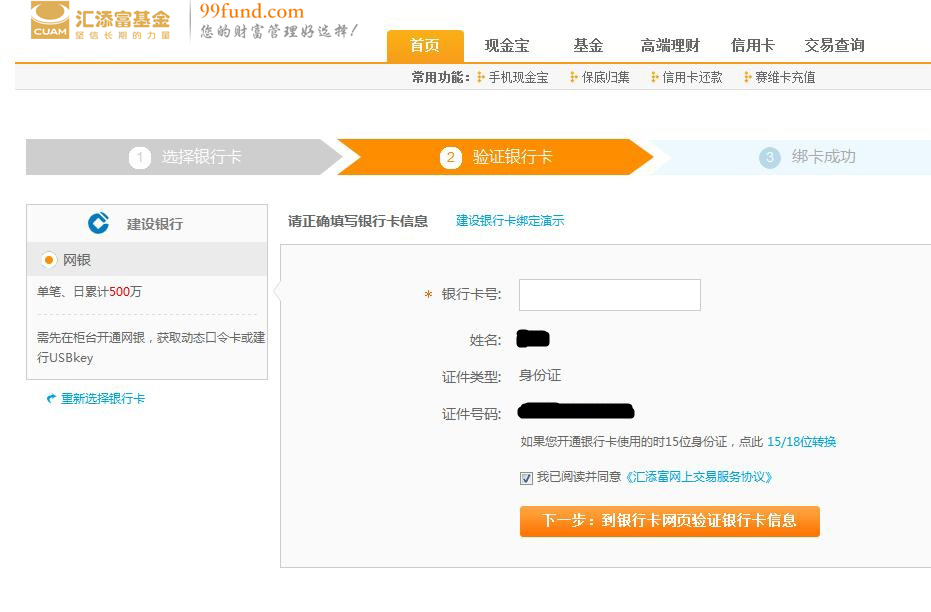 第三步 填入您的銀行卡信息,完成銀行卡驗證