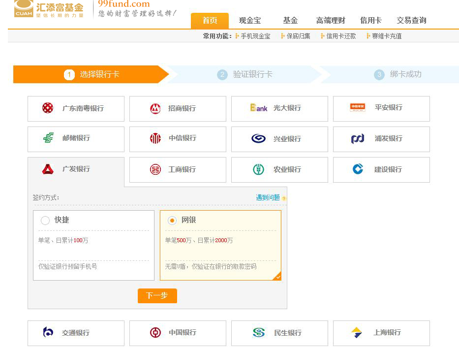 第二步 選擇“廣發(fā)銀行卡”-“網(wǎng)銀”,點擊下一步