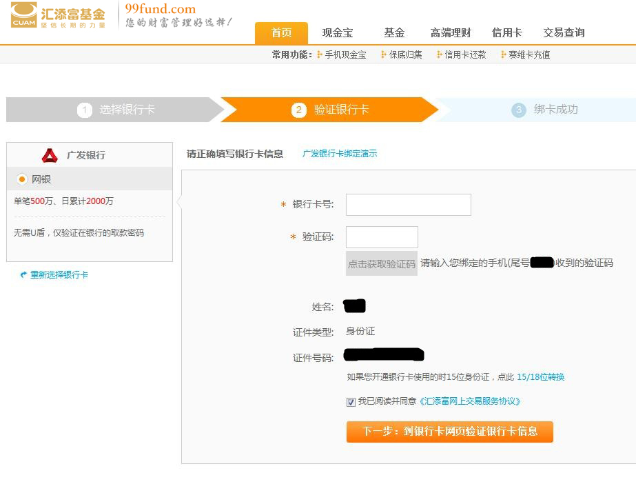 第三步 填入您的銀行卡信息,完成銀行卡驗證