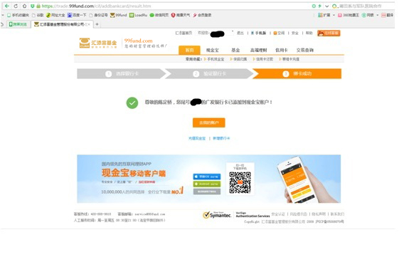 3.3 點擊“已完成驗證”,回到匯添富網(wǎng)站頁面。提示綁卡成功。