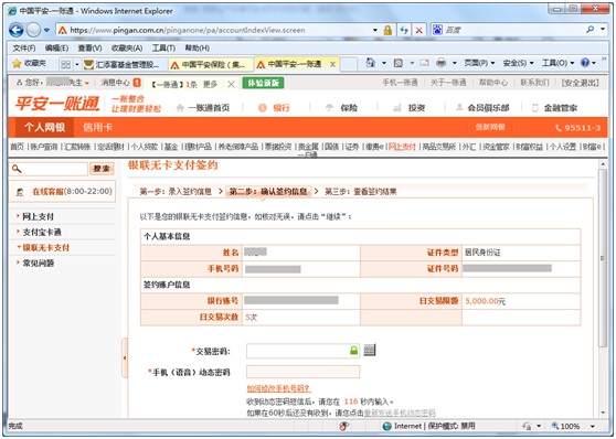 6.       輸入交易密碼和手機(jī)動(dòng)態(tài)密碼