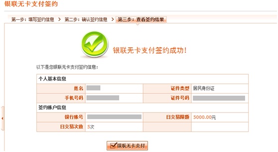 7.       銀聯(lián)無(wú)卡簽約成功