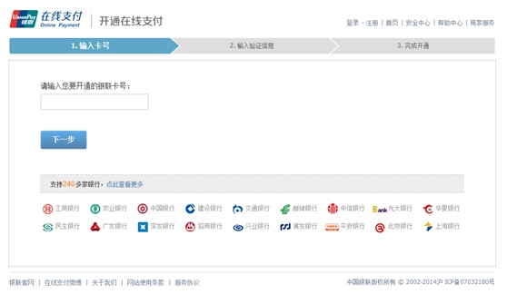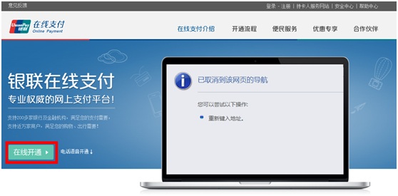 1. 登錄銀聯(lián)在線支付網(wǎng)站(https://static.95516.com/static/open/index.html),點擊“在線開通”