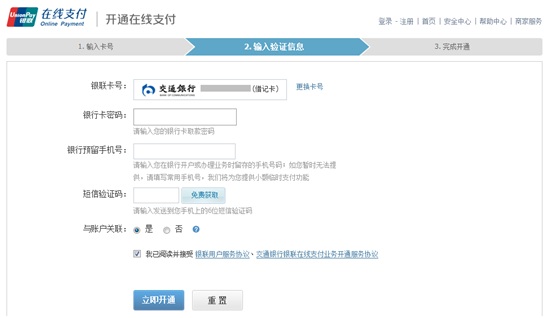 您可以選擇在線開通。