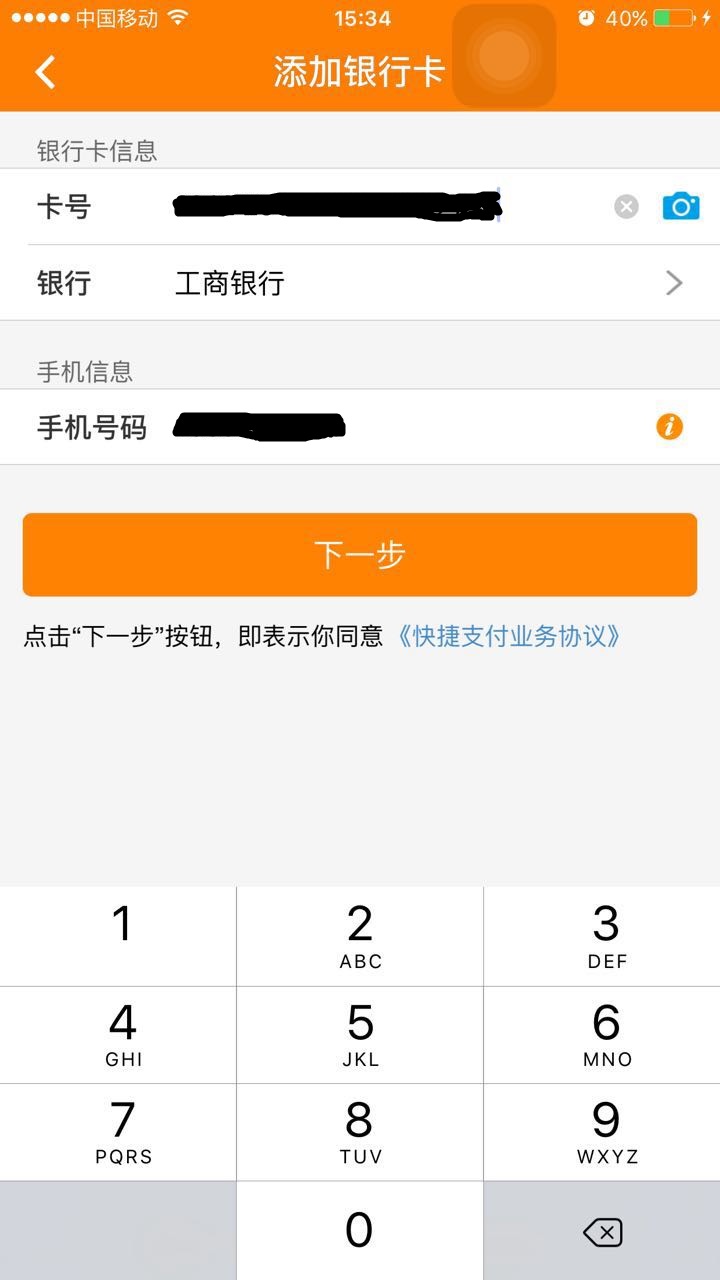 以工行快易付模式綁卡為例: