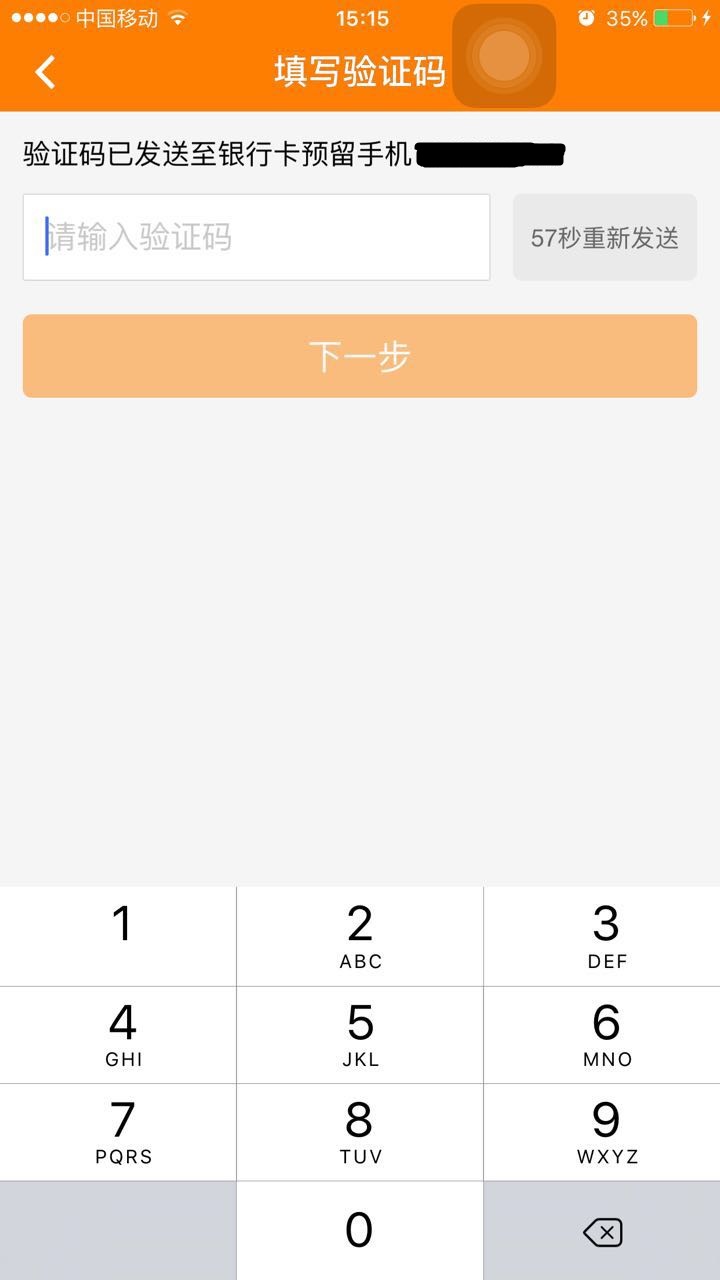 4、輸入發(fā)送到您手機(jī)上的驗(yàn)證碼,點(diǎn)擊下一步。