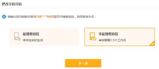 第二步:若是您的老手機(jī)號(hào)碼已經(jīng)無法使用,麻煩選擇“不能接受短信”,點(diǎn)擊“下一步”。